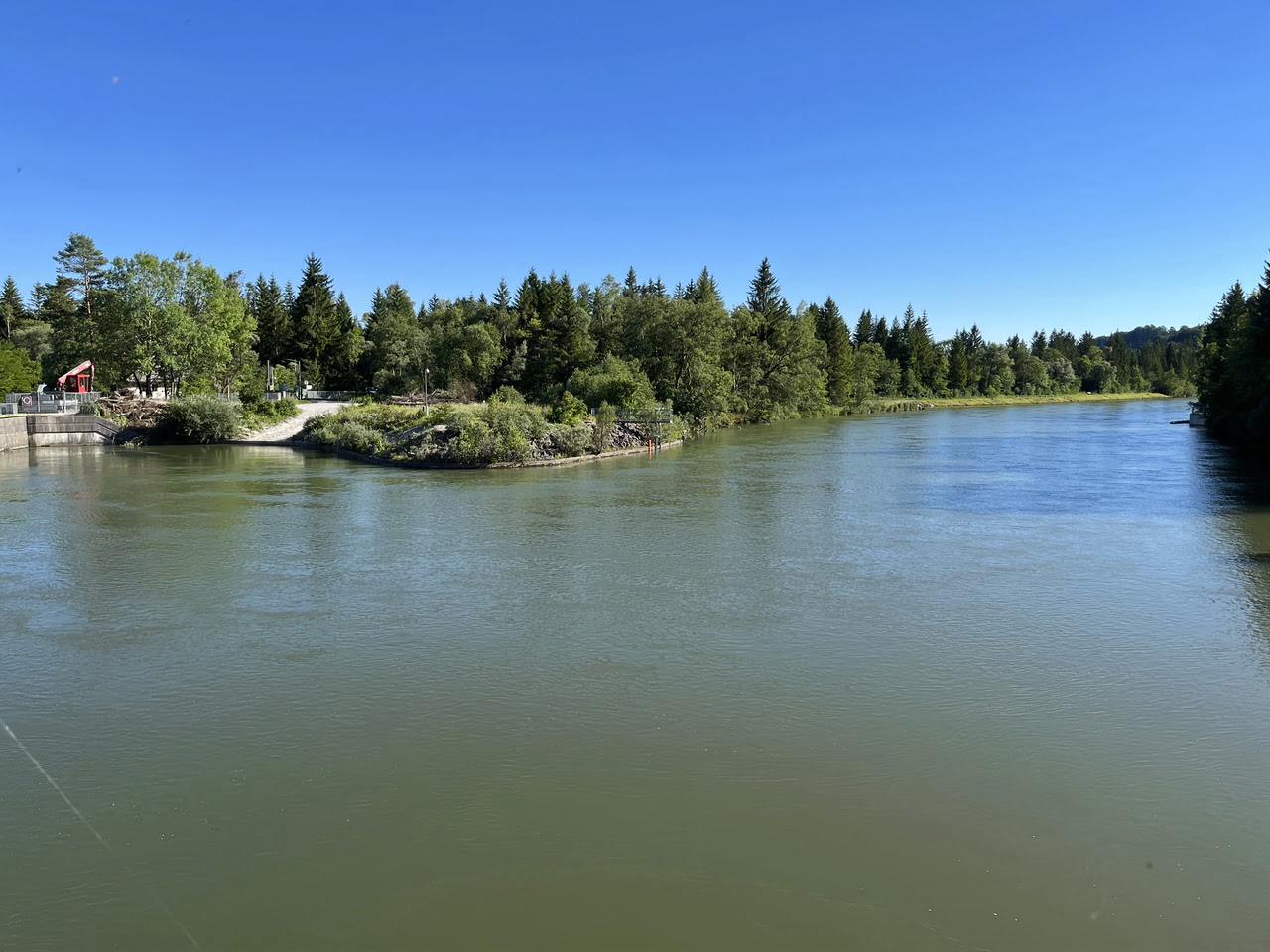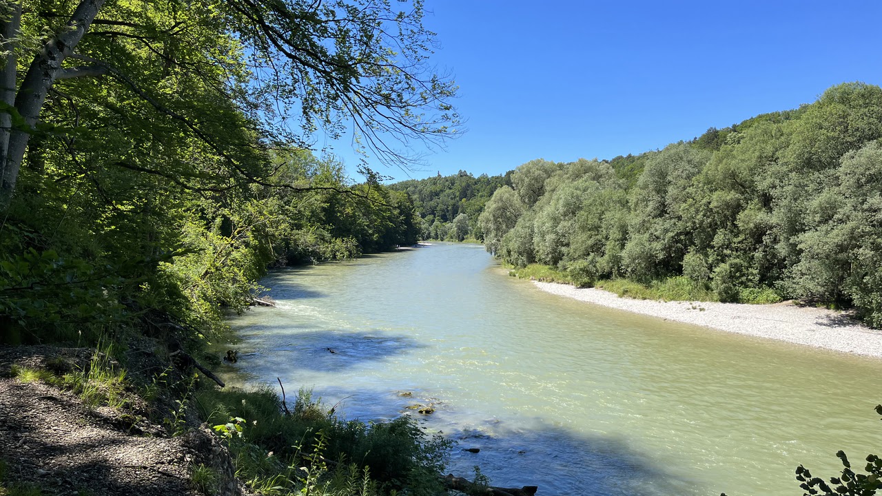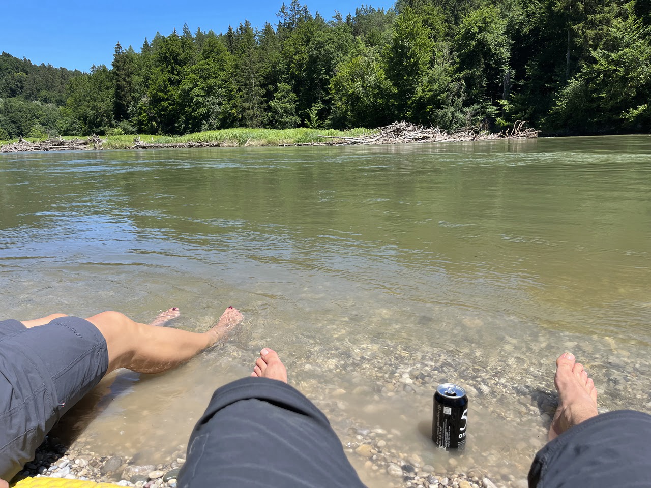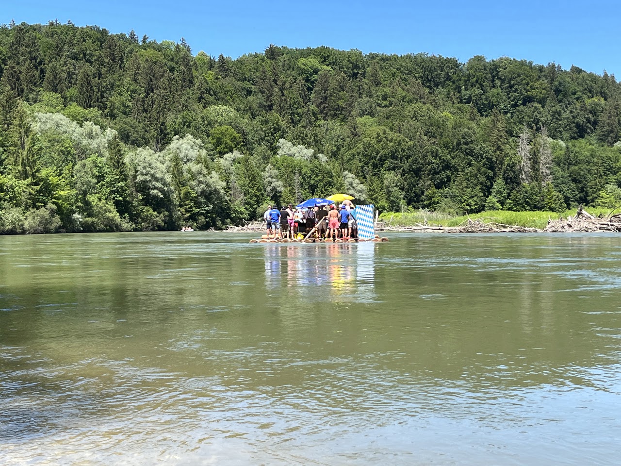 Zu Mittag wollten wir uns in einem Gasthaus auf dem Weg stärken. Leider mussten wir feststellen, dass hier wahrscheinlich COVID auch zugeschlagen hatte und die Gaststube temporär geschlossen war. Daher machten wir Mittag an einem schönen Kiesbett, direkt an der Isar. Hier konnten wir den vielen Paddelbooten und den bekannten Isarflößen zuschauen, wie sie uns passierten.