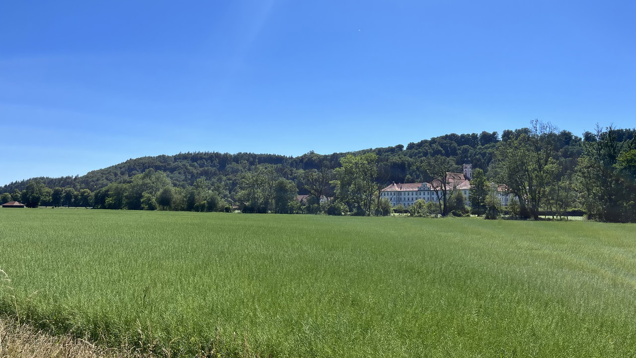 Etwas später, nach dem Kloster Schäftlarn fanden wir dann doch noch ein Gasthaus, welches geöffnet war. Im Biergarten Bruckenfischer genossen wir ein Radler, welches wirklich erfrischend war, an diesen heißen Tag. Der weitere Weg führte entlang eines Kanals und wir passierten das Ickinger Wehr. Wir verließen die Isar und folgten dem Trail hinauf in den Wald. Von hier oben hatten wir eine tolle Aussicht auf das Isartal, besonders am Riemersschmid Aussichtspunkt.