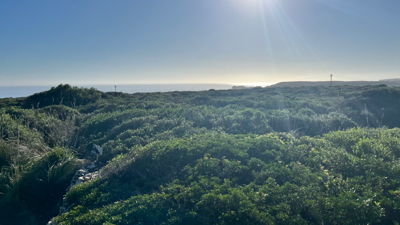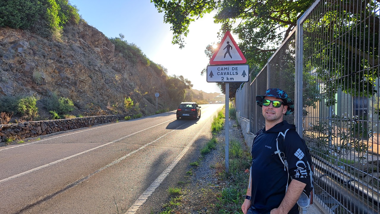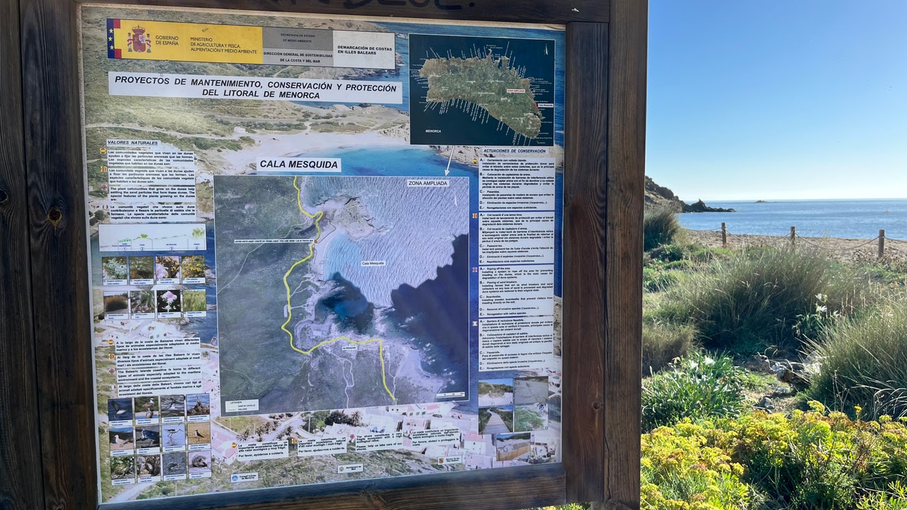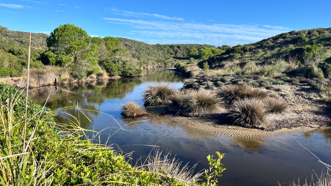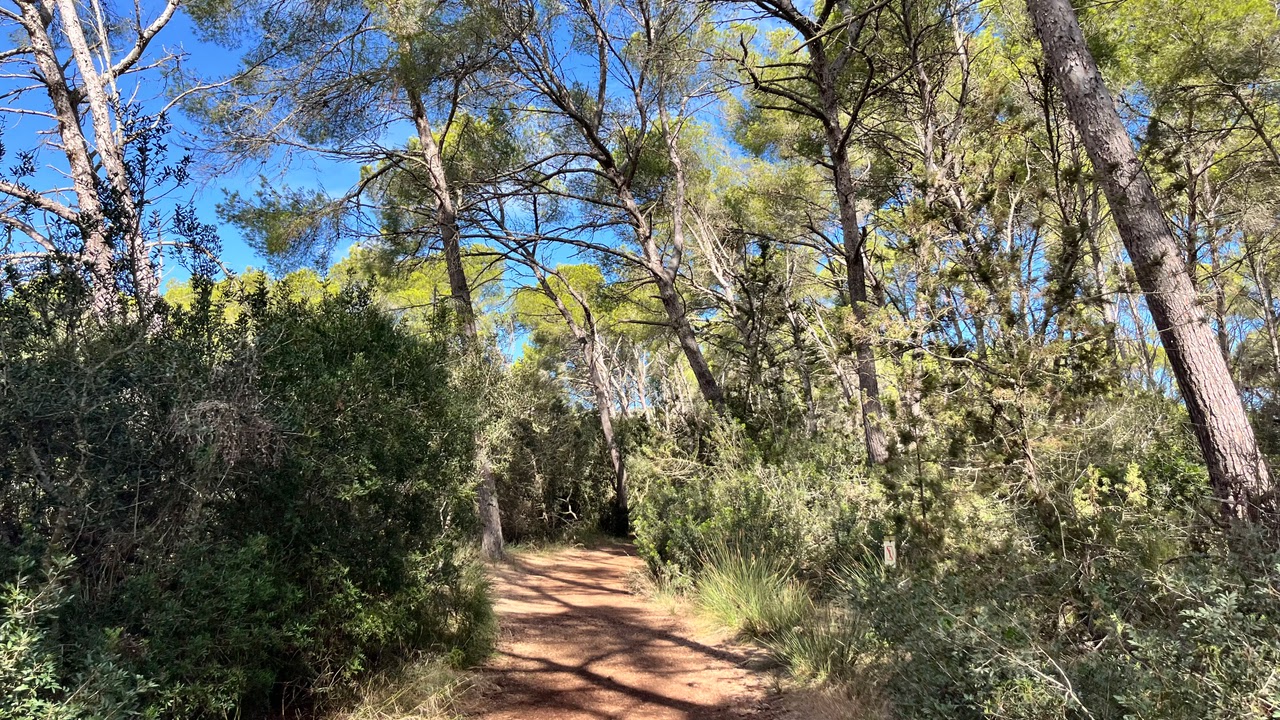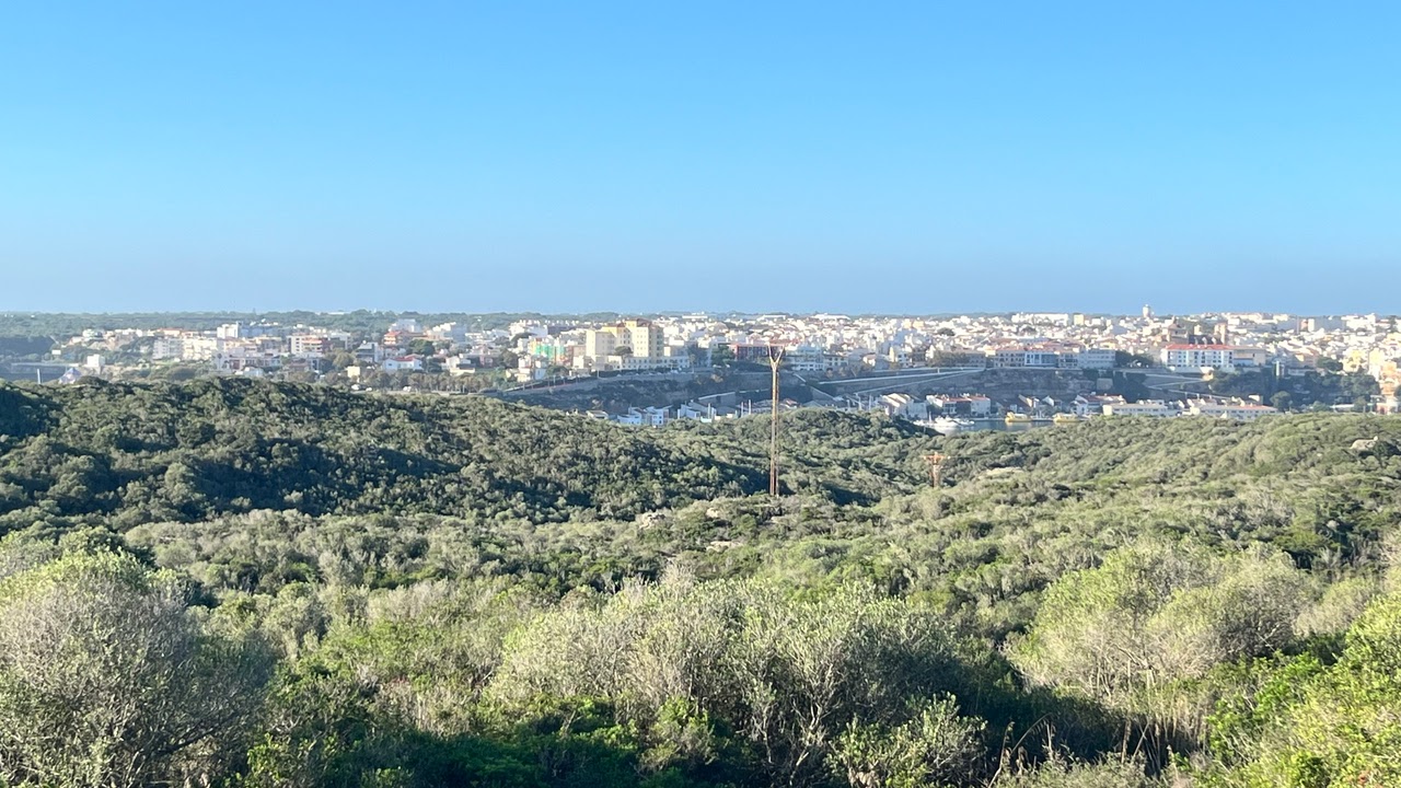 Wir liefen durch die Gassen mit dem südländischen Flair in Richtung Hafen. Als wir dort ankamen, hatten wir den Ausblick in Richtung Yachthafen. Dieser war voll mit Booten und sehr von Industrie geprägt. Wir liefen weiter und kurz vor dem Ende der Bucht hatten wir einen herrlichen Rückblick auf die Stadt und das Franziskanerkloster, welches über der Stadt thront. Nach einer Brücke begann der Weg entlang der Straße nach Sa Mesquita. Kein besonders schöner Weg, aber hier und da hatten wir ein paar mal schöne Aussichten zurück nach Maó. Plötzlich hörten wir eine Stimme aus den Büschen neben der Straße und wir trafen auf Francesca, die auch dem auf dem Camí unterwegs war. Google hatte ihr eine schönere alternative Route vorgeschlagen aber diese führte mitten durch Büsche und ihre Beine waren dadurch schon komplett verkratzt. Marcel kam ihr zur Hilfe und zeigte ihr den Weg raus. In der Feriensiedlung Sa Mesquita, an der Nordküste angekommen, suchten wir nach einem Supermarkt, aber dort war keiner zu finden. Sa Mesquita ist ein schöner ruhiger Ferienort mit ein paar Häuser und einem beliebten Strand. Ab dort gingen wir zusammen mit Francesca weiter und merkten, dass wir sogar das gleiche Ziel für den Abend hatten. Der weitere Küstenpfad eröffnete uns viele schöne Buchten und ein paar knackige Anstiege über die Dünen waren auch dabei. Die Ausblicke ließen uns immer wieder stauen. Wir machten einen Abstecher in das Örtchen Es Grau und deren Supermarkt. Wir kauften was leckeres zu Essen ein, um die Mittagspause auf später zu verschieben – natürlich für die perfekte Bucht mit anschließendem Bad im Meer.